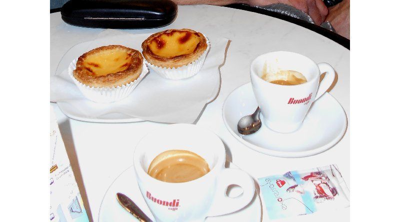 17h40, nous nous mettons à l'abri pour une pause goûter à la Confeitaria São Domingos (6) : nos premiers Pastéis de Nata faits maison !