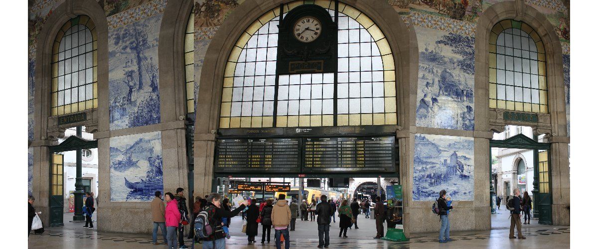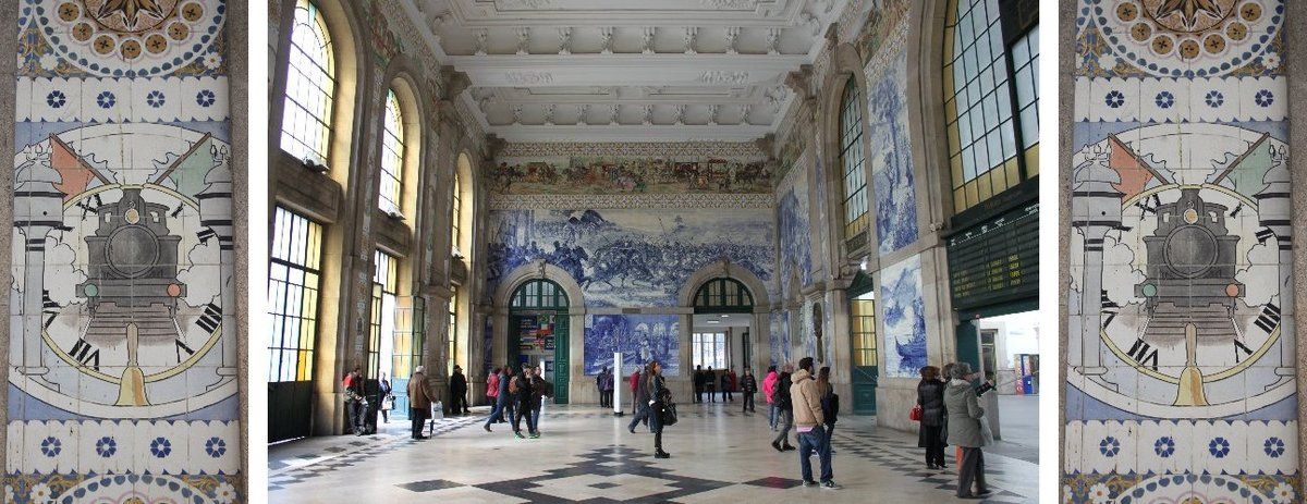 Pause photo dans la salle des pas perdus, célèbre pour ses azulejos. ("azoulejouch !" Désolé pour les hispanisants : pas de jota en portugais !)