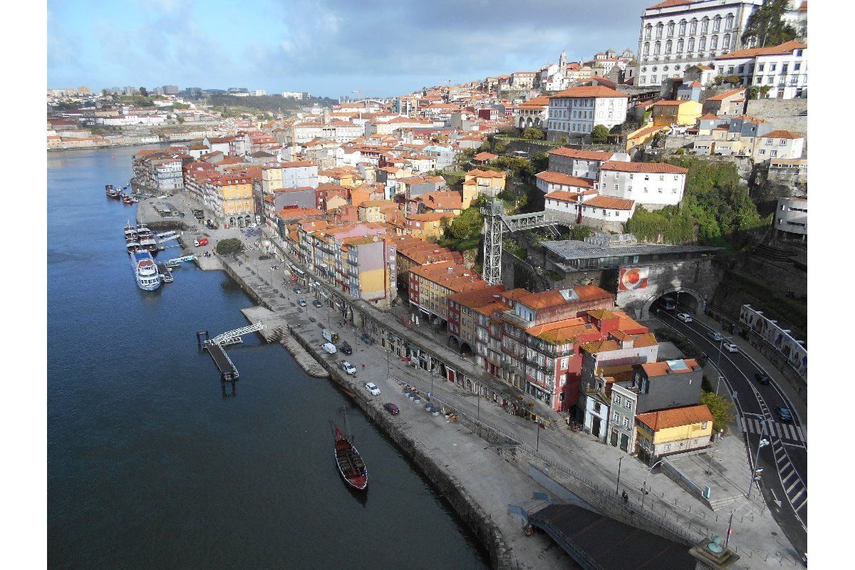 Nous commençons notre balade, l’appareil photo à la main, le long des quais du Douro jusqu'à Escadas do Codeçal (2), l'escalier à proximité du tunnel qui nous mène au tablier supérieur du pont Luis I (3).